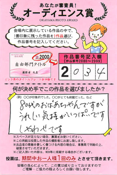 一般部門のオーディエンス賞では専用用紙による投票で、コメントが書かれている嬉しさがありました。