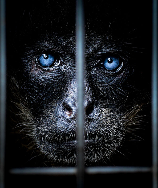 ・ほぼ漆黒の画面に深い藍色の瞳が鮮烈で渋い写真。格子をど真ん中にしたのも英断!